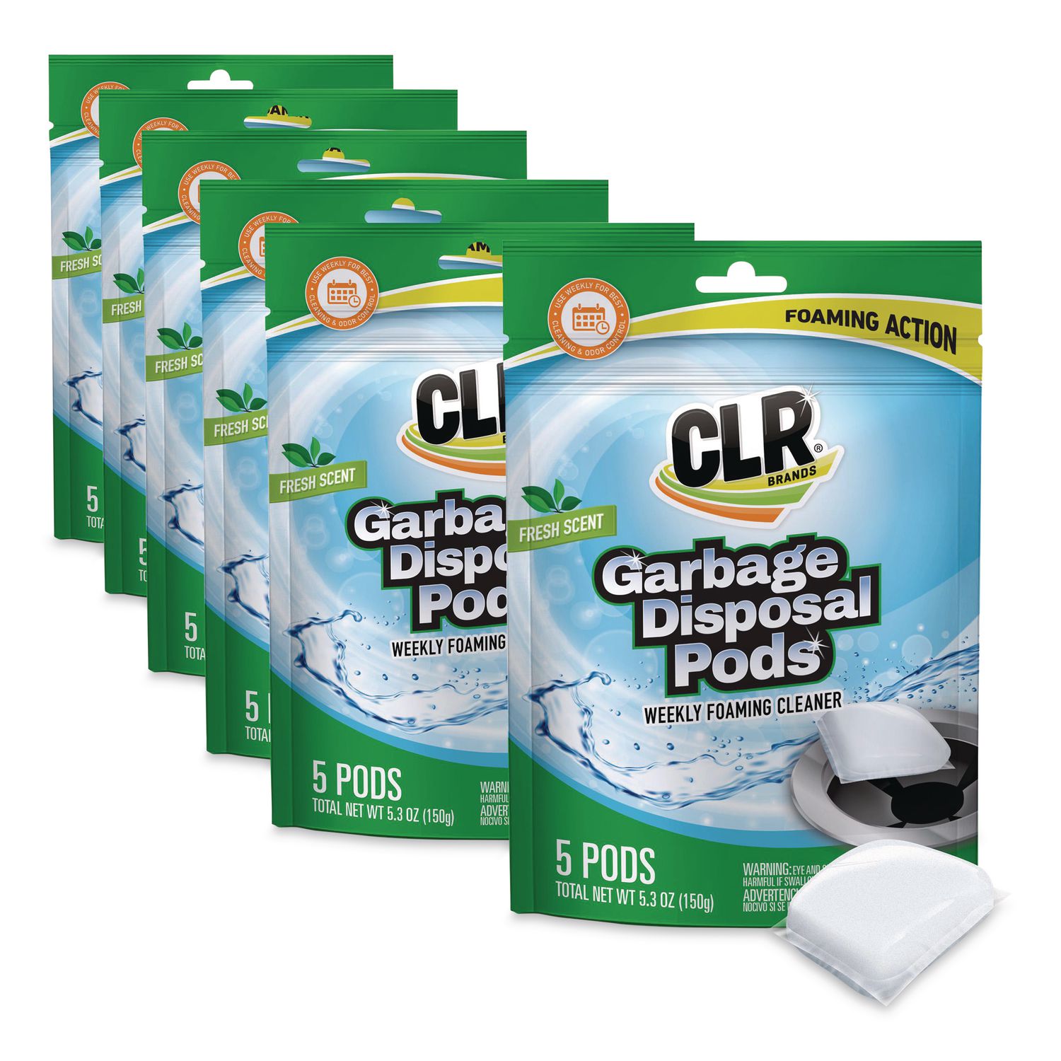 CLR Brands® Garbage Disposal Pods are ready-to-use, fast dissolving pods with a fresh, clean scent to safely cleans garbage disposals and remove odors. Formulated with a strong detergent, stuck-on-food is loosened from disposal blades to help reduce odors, while the foaming action cleans the disposal blades and drain. Application: Garbage Disposals; Applicable Material: Garbage Disposals; Chemical Compound: Sodium Bicarbonate; Citric Acid; Dirt Types: Food Waste; Grease; Oils.